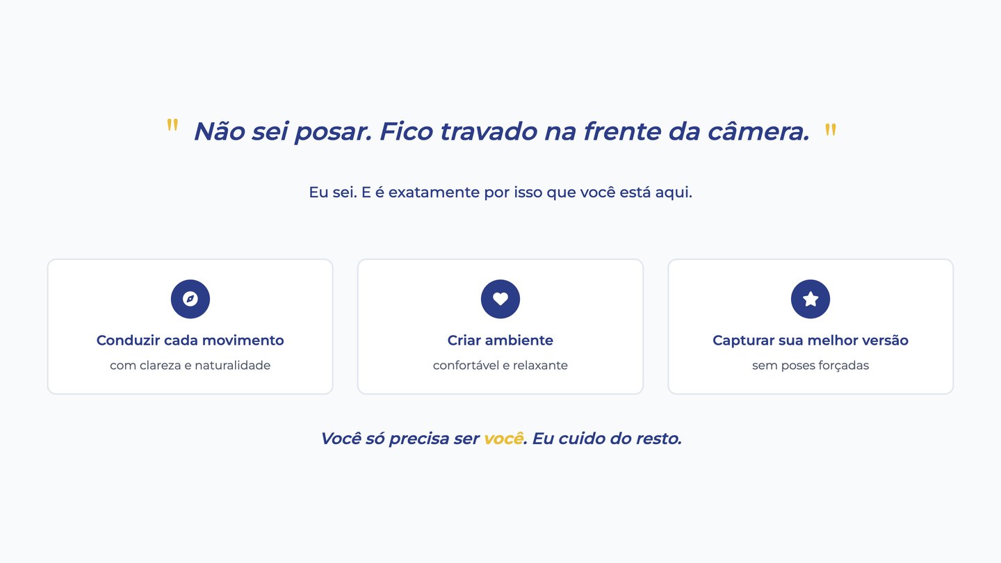 Este guia foi criado para ajudar você a entender como funciona meu trabalho com retratos, o que esperar do processo e se ele faz sentido para o seu momento. Aqui explico minha forma de trabalhar, com clareza, cuidado e sem pressa.